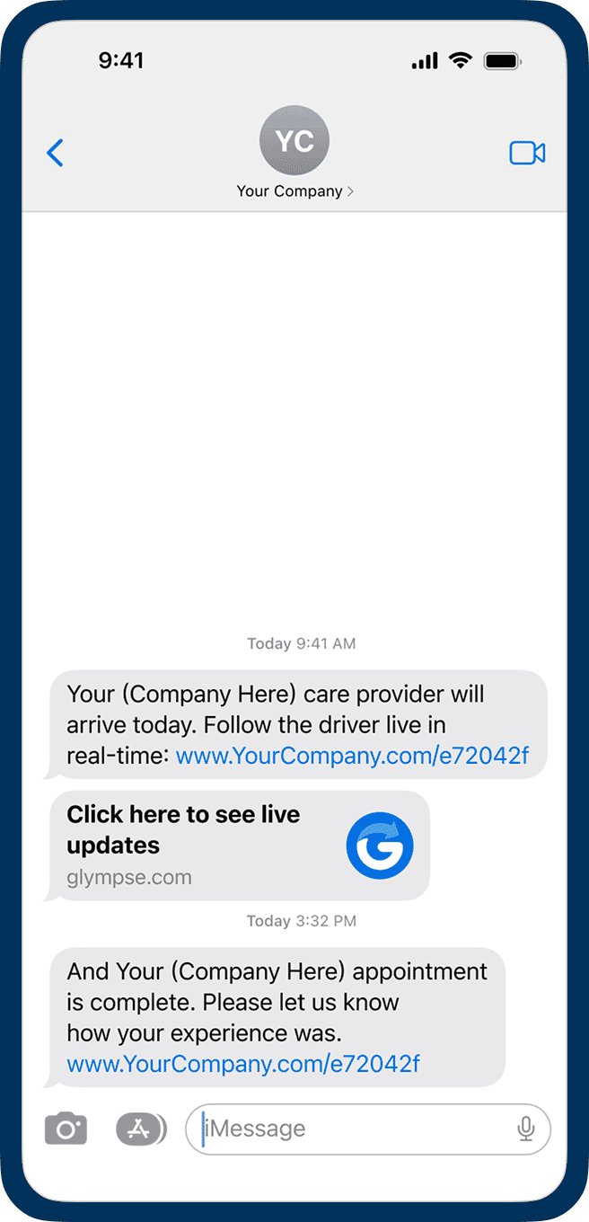 From scheduling to appointment completion, Glympse packs all the features that keep everyone in sync. Click through to see the many features we offer or contact us for a demo.
